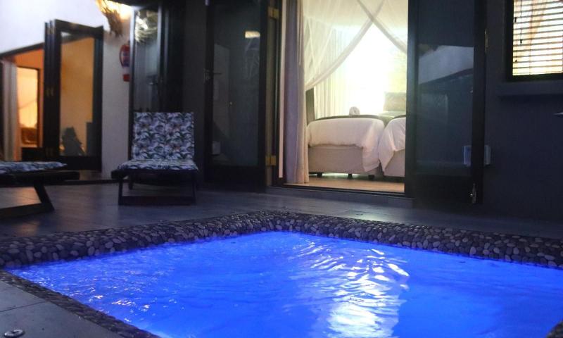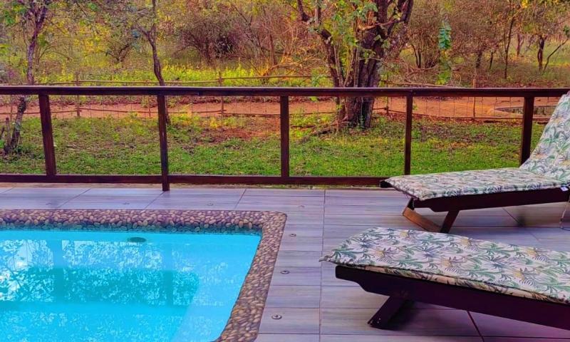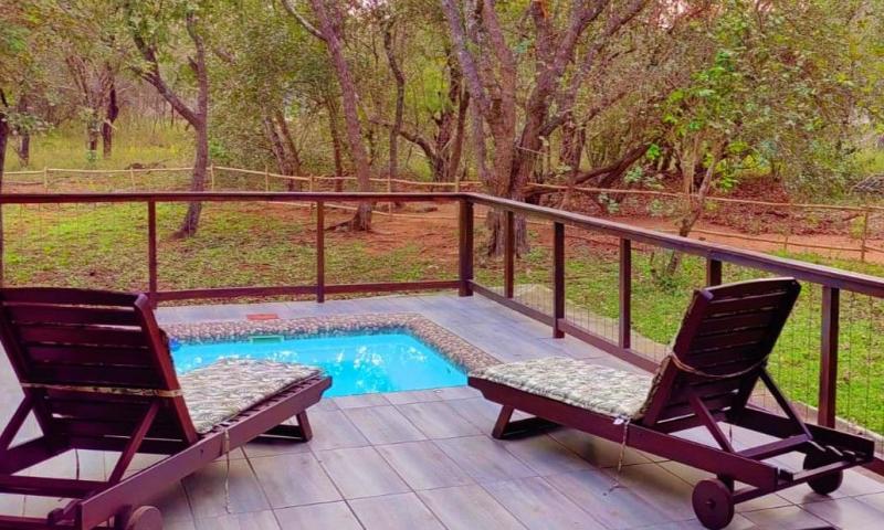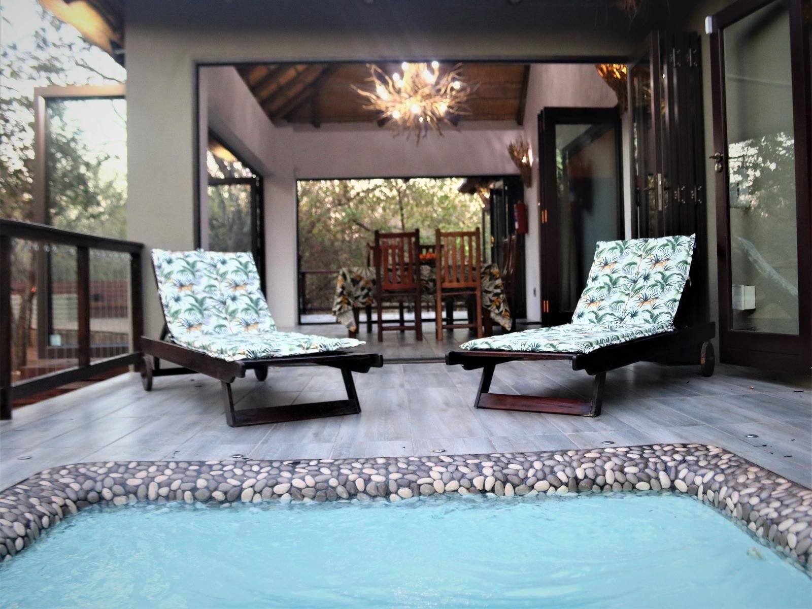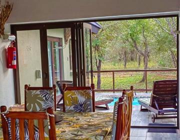 A stylish and spacious home comprises 2 en-suite bedrooms and an open-plan kitchen with a living area that leads onto an enclosed dining patio. This seating overlooks the braai area, splash pool and luscious surroundings. Bird watching fulfils all expectations.