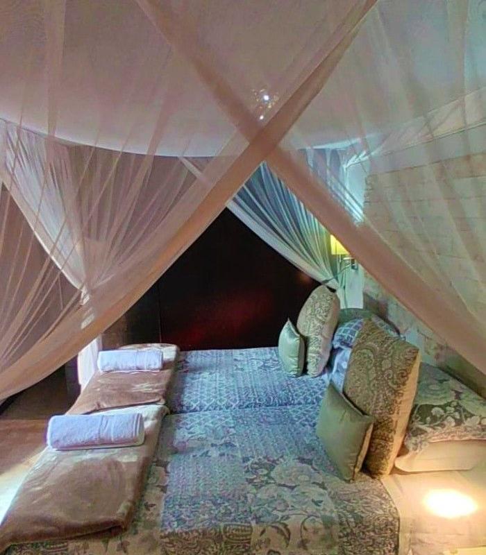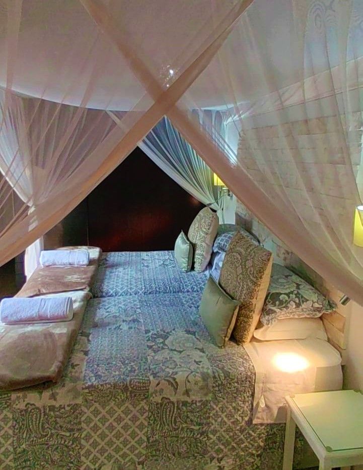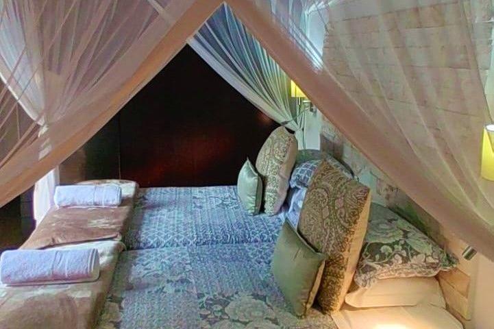 - 1 Queen size bedroom, aircon, an en-suite shower that opens to an outdoor balcony.