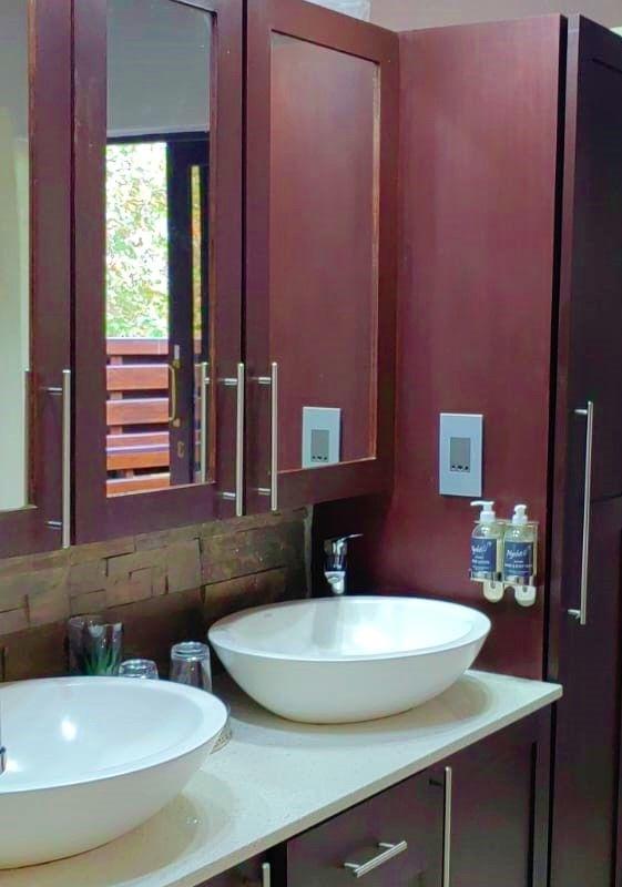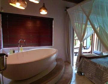 - 2nd Bedroom has two ¾ beds, aircon an en-suite bath and a Shower which leads to an outdoor shower.