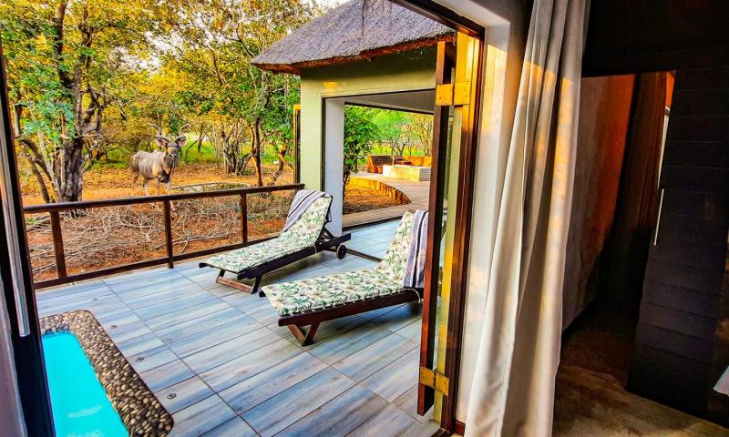 Buffalo, Rhino and Lions are confined to Marloth's game reserve "Lions Spruit" whereas the rest of the game such as Kudu, Zebra, Giraffe, Blue wildebeest, Nyala, Impala, Warthog and plenty more aren't restricted by fences and roam freely between the units that are built on 1500 hectares.